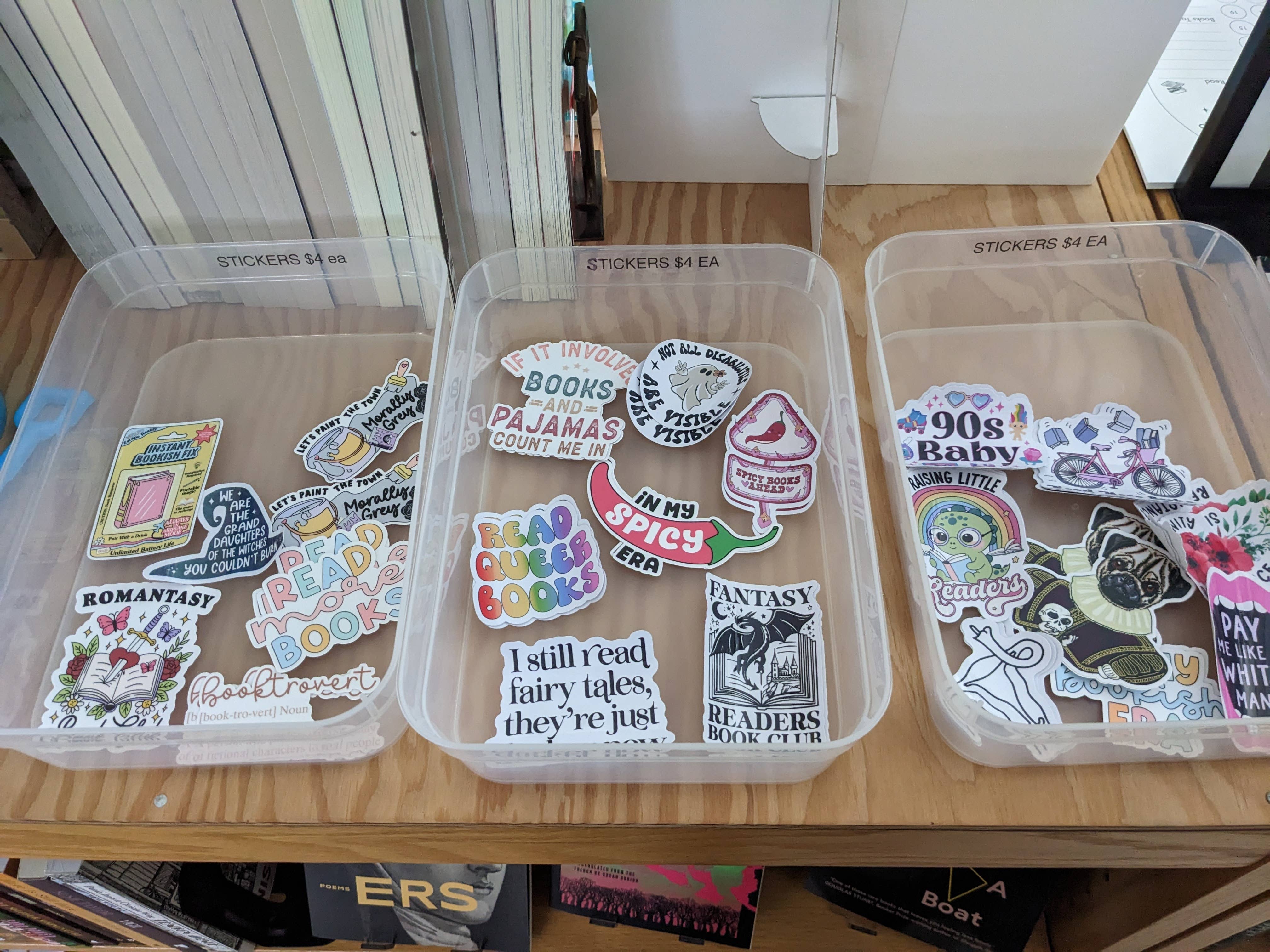 J'adore ces autocollants, et nos clients aussi ! Je travaille cependant sur un meilleur présentoir.