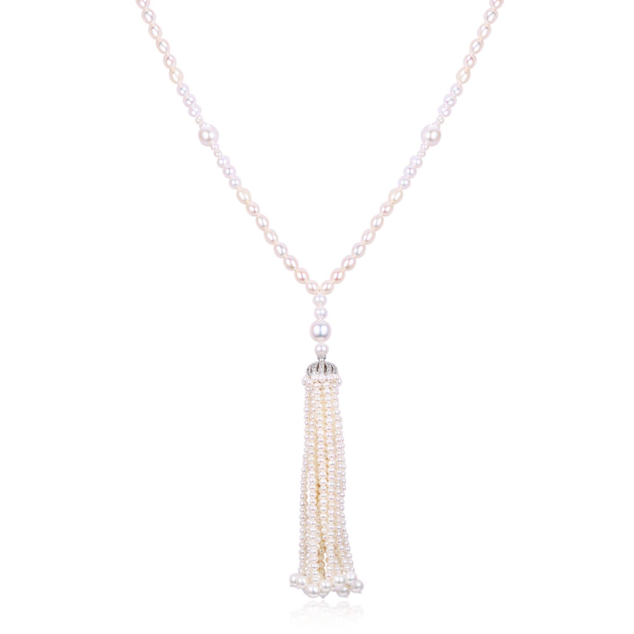 Collier All The World's A Stage en argent sterling et perles blanches en vente B2B