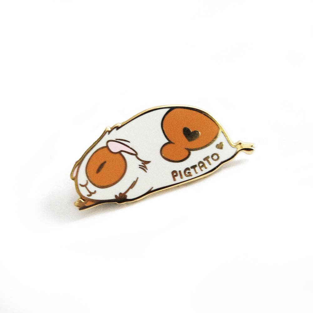 Un adorable cochon calicot se régalant de trèfle frais ! L'épingle est en métal doré avec deux attaches en caoutchouc à l'arrière. Cette épingle a également des reflets verts sur les feuilles imprimées avec de l'encre UV pour une touche de couleur spéciale ! Le cochon trèfle mesure environ 4,45 x 4,45 cm.