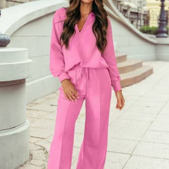 C'est un ensemble pantalon mignon et chic.