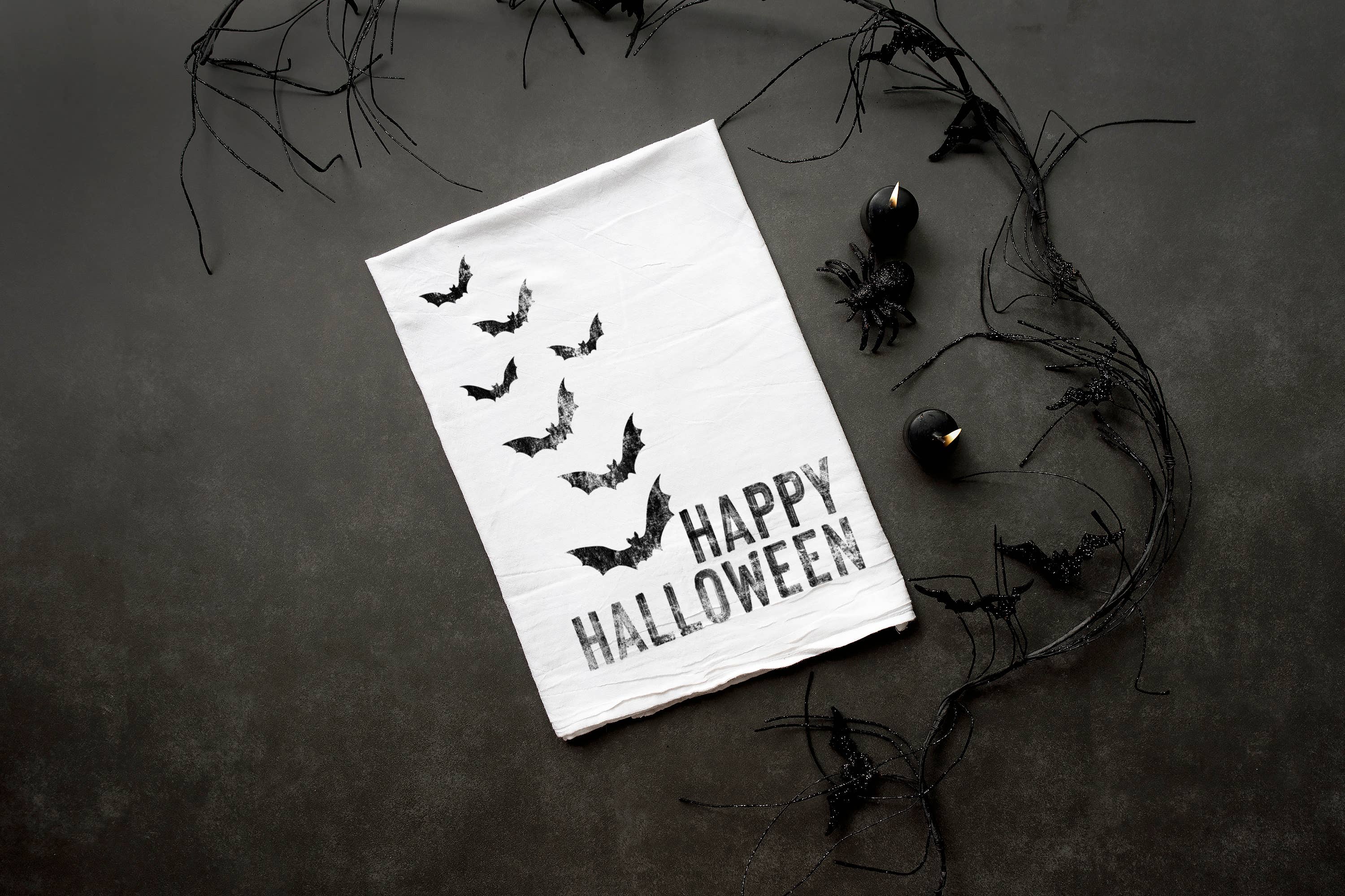 Torchon Halloween avec motif citrouilles, idéal pour la cuisine ou le bar durant la saison d'automne. TAILLE : 45,7 cm x 71,1 cm MATÉRIAU : 100 % coton ; torchons de type sac à farine très absorbants, durables et à séchage rapide ENTRETIEN : lavage en machine à froid ; séchage en machine à basse température Les torchons sont munis d'un crochet en croix au coin arrière pour faciliter le séchage en suspension.