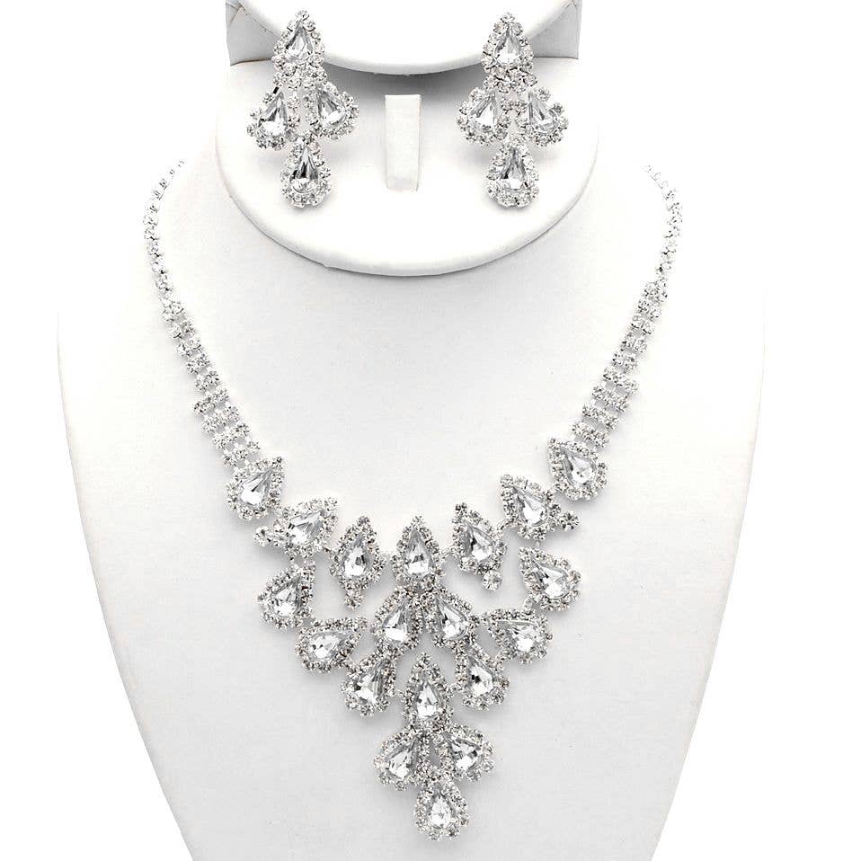 Collier à pendentif avec pierres rectangulaires accentuées • Taille du collier : 16" + 3" L • Taille de la décoration : 7" L • Taille des boucles d'oreilles : 1,5" L • Conforme au plomb et au nickel