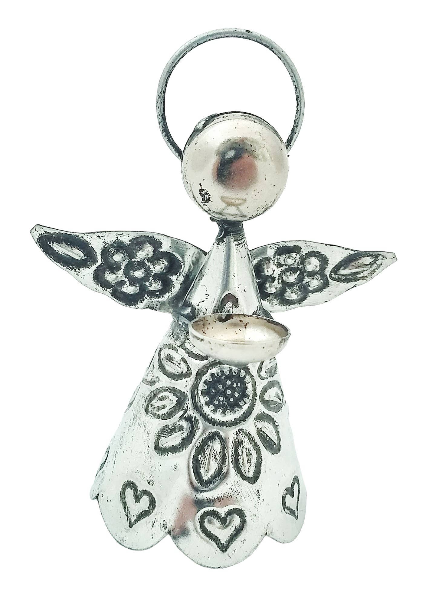 Notre adorable bougeoir Angel sera une pièce à transmettre de génération en génération. Cet ange en métal bien fait est un ajout robuste mais magnifique à votre décoration de vacances. Détails de l'article : mesure 13,5 pouces de haut, 8 pouces de large et 8,5 pouces de diamètre ; peut contenir un cône ordinaire ou à piles qui n'est pas inclus ; construction en métal solide ; finition blanche rustique