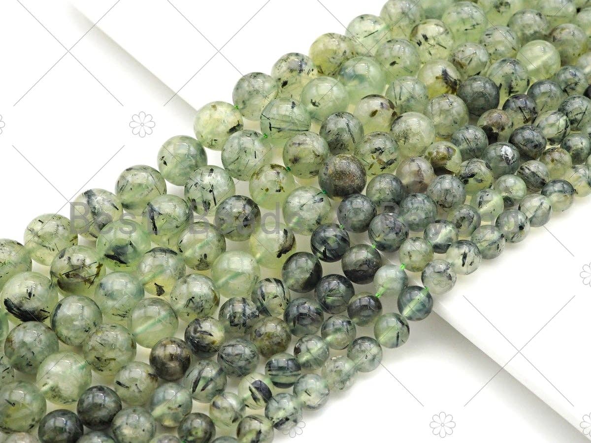 Le diamètre moyen des perles est d'environ 11 mm. Ces fils sélectionnés contiennent une grande variété de pierres précieuses, du quartz rutile à l'améthyste. Les tons bleu-vert et chauds occupent une place prépondérante sur les mèches, avec quelques légères variations de forme et de taille évidentes.