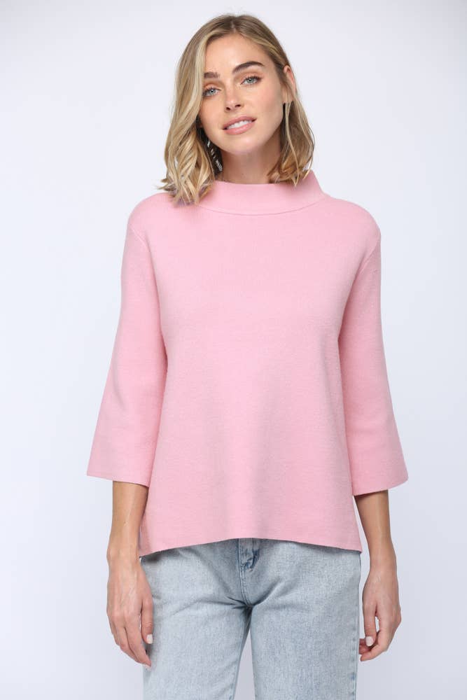 Pull en maille à manches courtes dolman et col montant