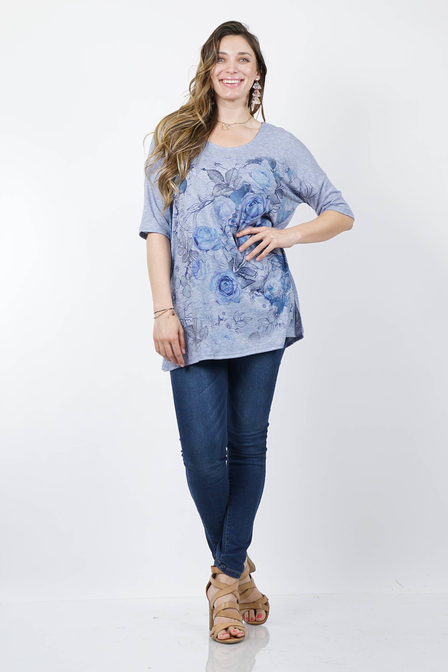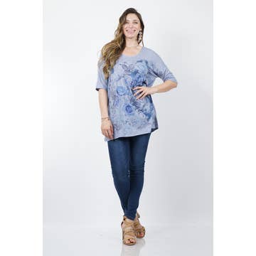 Tunique asymétrique à col rond à col rond Blue Ocean Jungle Green Burnout pour femme.