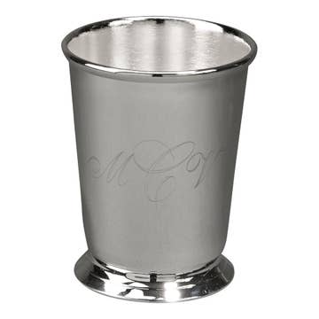 Cette magnifique tasse Julep à la menthe est idéale pour servir le cocktail signature du Kentucky Derby ou tout autre cocktail traditionnellement servi dans une tasse en métal comme un Moscow Mule. Il constitue également une pièce maîtresse délicate pour exposer des fleurs fraîchement coupées. Capacité : Peut contenir confortablement 12 oz Matériaux : Fabriqué en laiton massif avec placage en argent sterling Entretien : lavage à la main recommandé