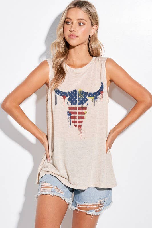 T939G10691 - Débardeur à franges en forme de cœur avec drapeau américain