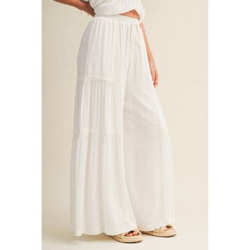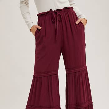 Pantalon palazzo plage large jambe maxi à volants élastiqués VP73052 en vente B2B