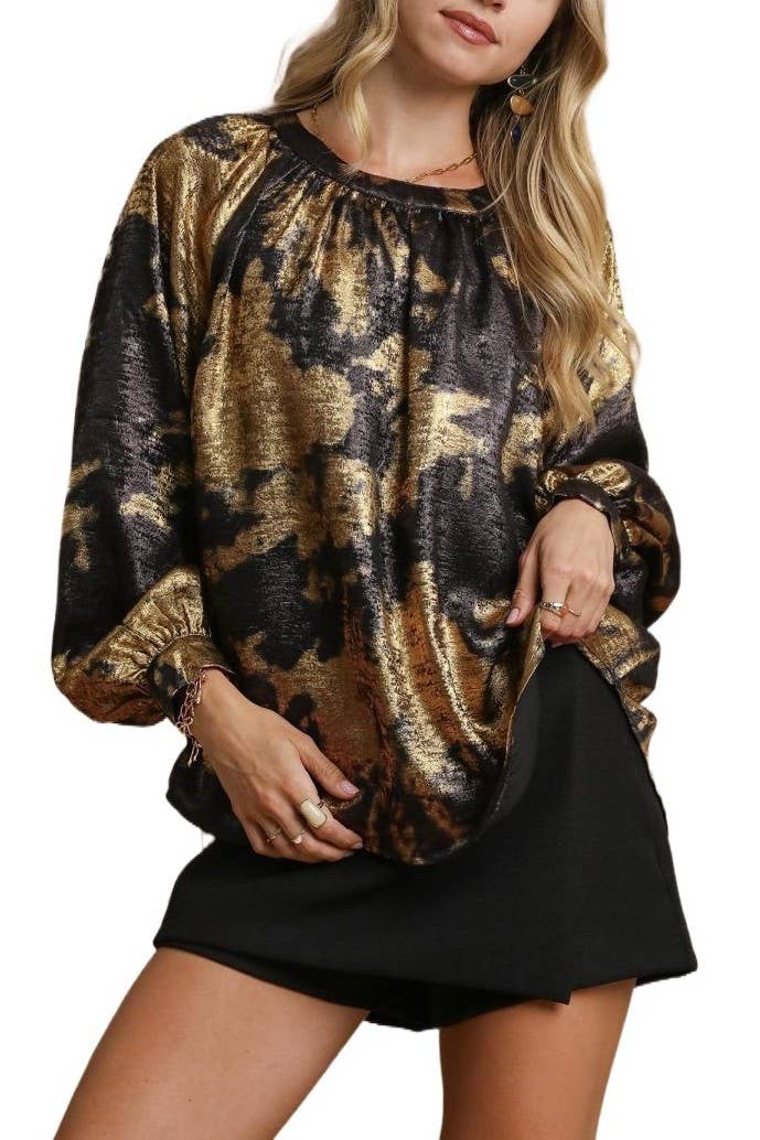 Blouse portefeuille pour femme. Manches mi-longues à plusieurs niveaux. Col en V. 100 % coton Taille : taille unique (convient aux tailles M-XL) Couleur : marron, tons crème noirs