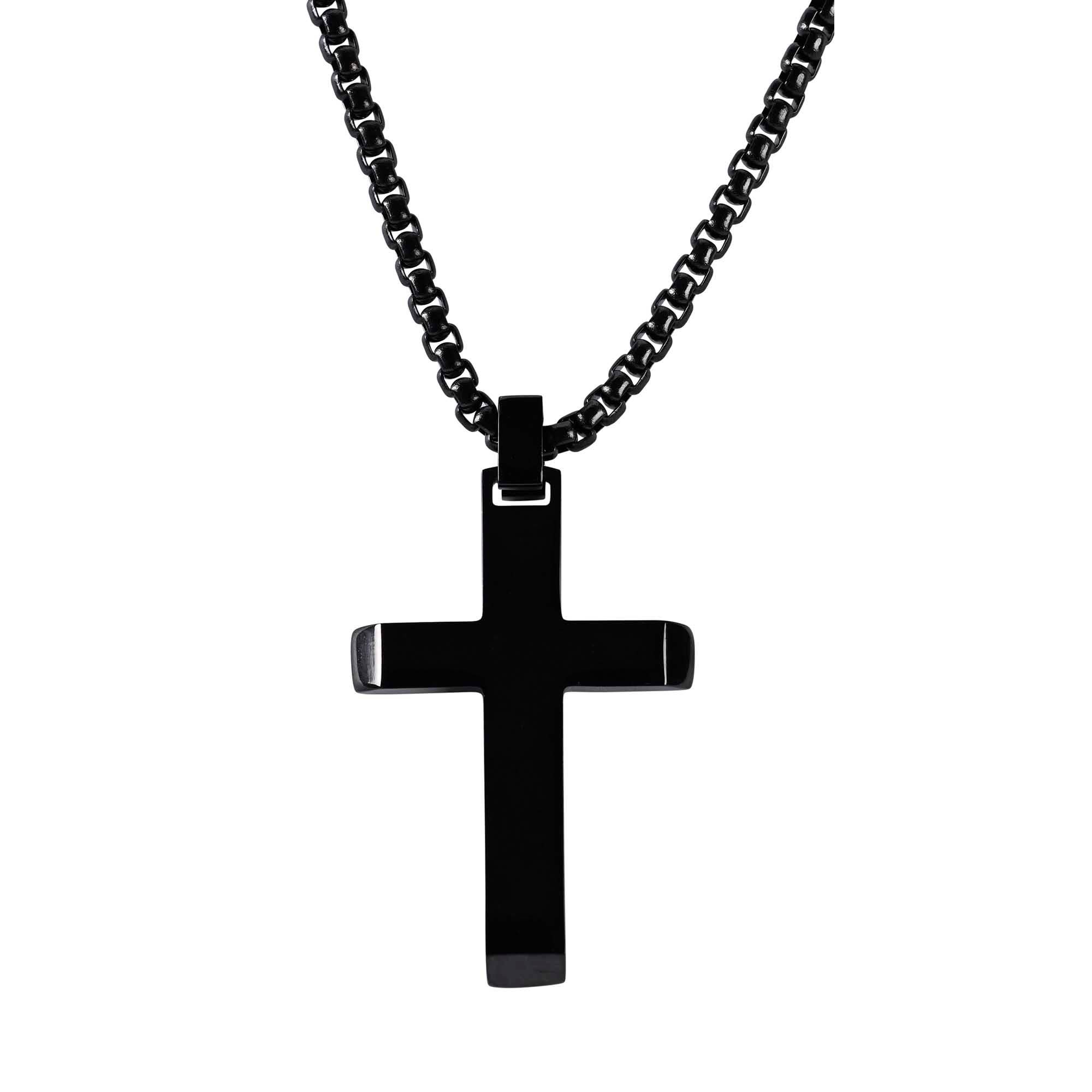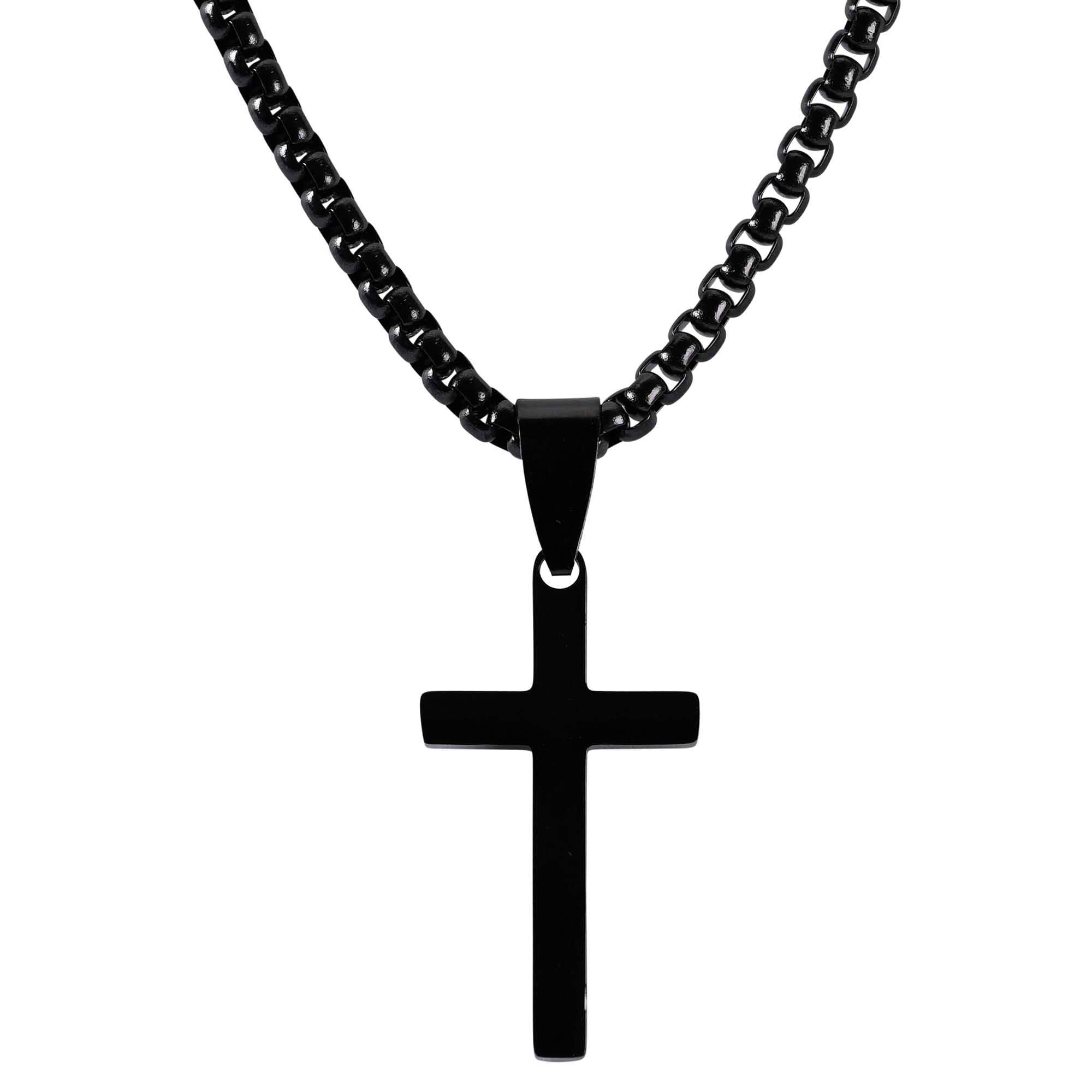 La croix ancienne avec tourbillons et balle attachée mesure 1 3/4 L x 1 1/4 W. Le collier en acier inoxydable est monté sur une chaîne de 24 pouces ; emballé dans une boîte noire de luxe.