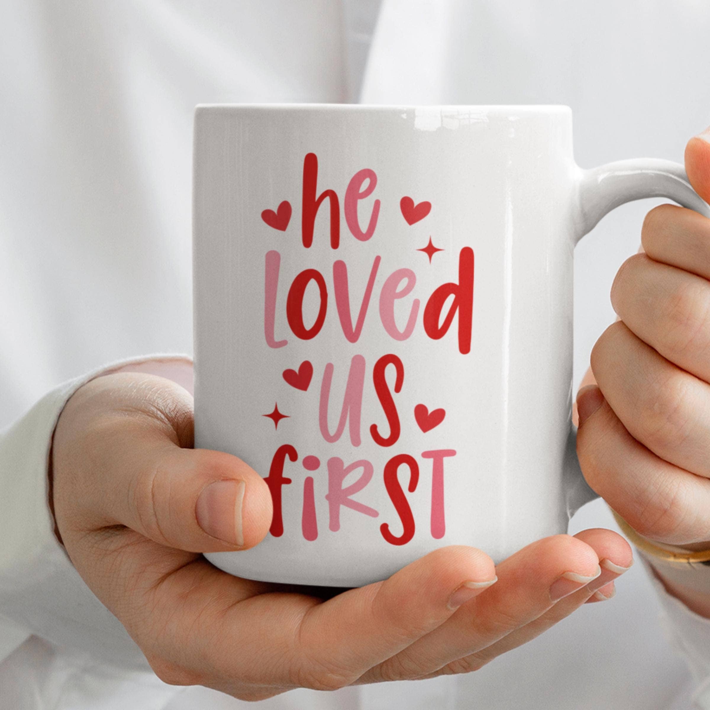 Tasse chrétienne pour la Saint-Valentin, cadeau chrétien de Saint-Valentin. Détails du produit : 📍 Tasse en céramique - Matériau : céramique blanche/noire - Disponible en deux tailles : 11 oz (0,33 l) et 15 oz (0,44 l) - Coins arrondis 📍 Tasse accent - Matériau : céramique blanche avec intérieur et anse colorés - Disponible en deux tailles : 11 oz (0,33 l) - Coins arrondis - Revêtement ORCA ❤️ INSTRUCTIONS D'ENTRETIEN 📍 Tasse en céramique/Tasse accent : nettoyage au lave-vaisselle ou lavage à la main à l'eau chaude avec du savon. 📍 Tasse changeant de couleur : lavage à la main uniquement. POLITIQUE DE RETOUR ET D'ÉCHANGE - En cas d'erreur de notre part, nous acceptons les retours ou échanges. - Les retours ou remboursements ne sont pas acceptés en cas d'erreur du client, comme le choix d'une taille incorrecte ou une adresse erronée.