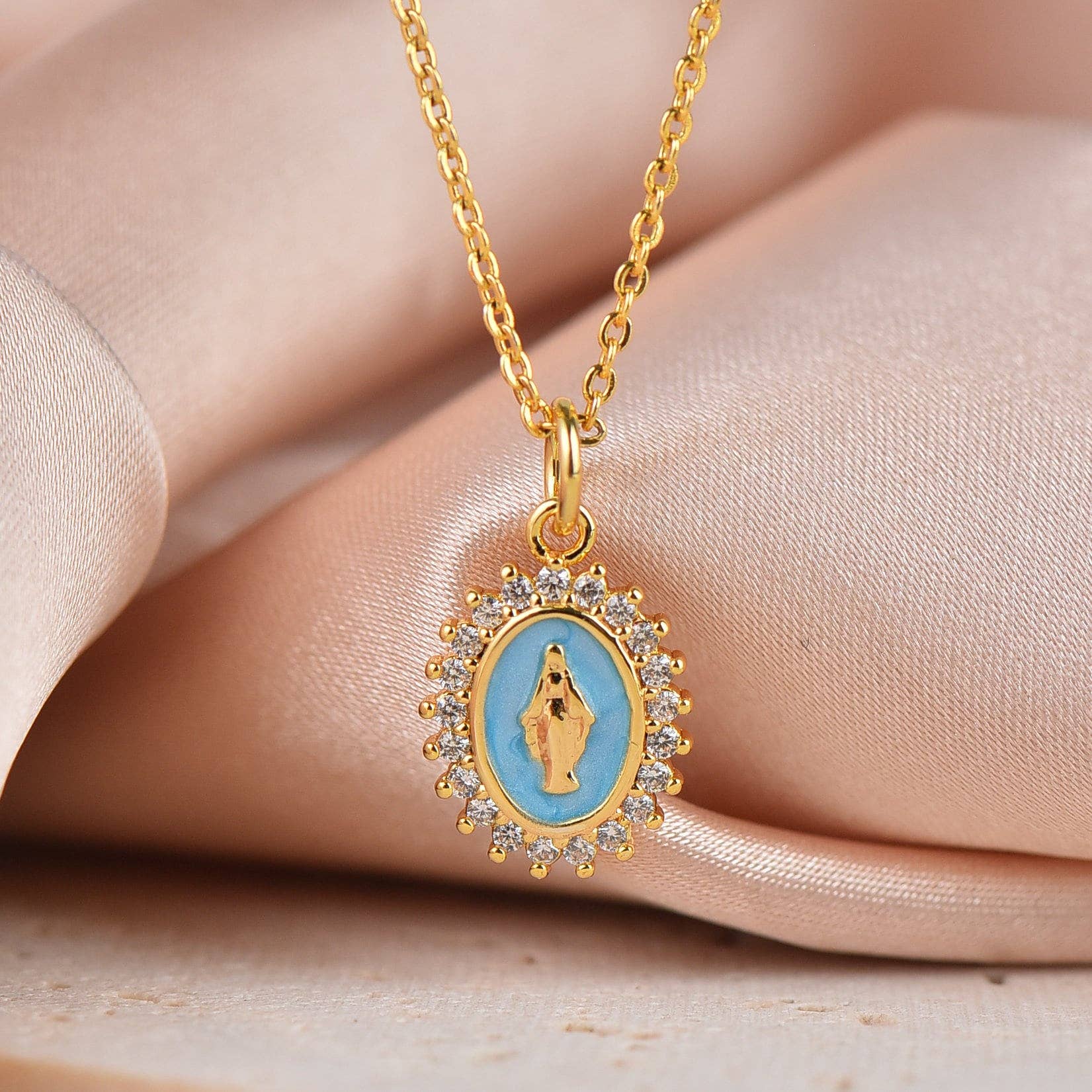Double scapulaire avec perles noires et chaîne plaquée or 18K – Bijou de protection et de foi. Découvrez l'élégance et la spiritualité du double scapulaire avec perles noires et chaîne plaquée or 18K. Conçu avec des images sacrées soigneusement encadrées de fines perles noires, cet amulette allie dévotion et sophistication. Sa chaîne plaquée or 18K ajoute une touche de luxe, idéale pour ceux qui recherchent une pièce de protection au style intemporel. Parfait pour un port quotidien ou comme cadeau significatif.