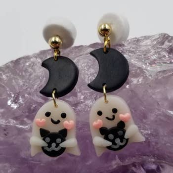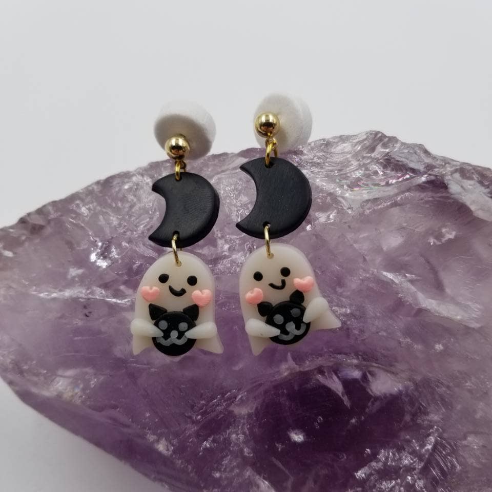 Bijoux d'automne et d'Halloween Design en forme de citrouille et de fantôme Style amusant Fait main Matériau argileux Dimensions des boucles d'oreilles : 1,8 x 4 cm