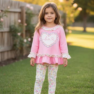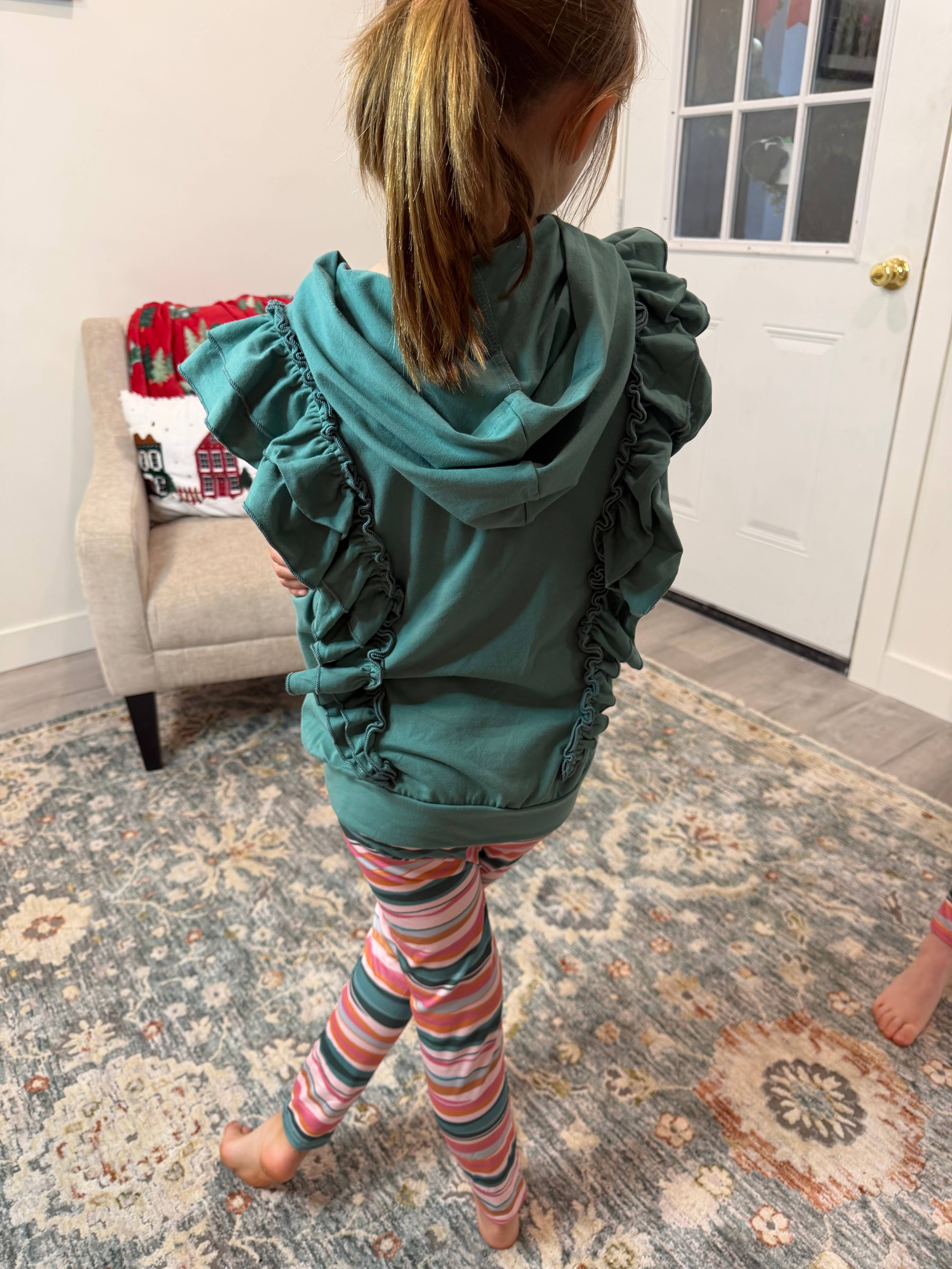 Ensemble de leggings à capuche et à rayures à double boutonnage à volants Sage pour enfants en vente B2B