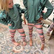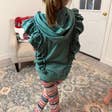 Sweat à capuche vert sauge pour filles avec double volant et boutons. Legging à rayures multicolores inclus. La tenue la plus mignonne pour la rentrée des classes à l'automne ou pour les douces journées d'hiver ! HAUT : 97 % coton, 3 % élasthanne PANTALON : 95 % polyester, 5 % élasthanne