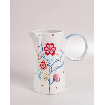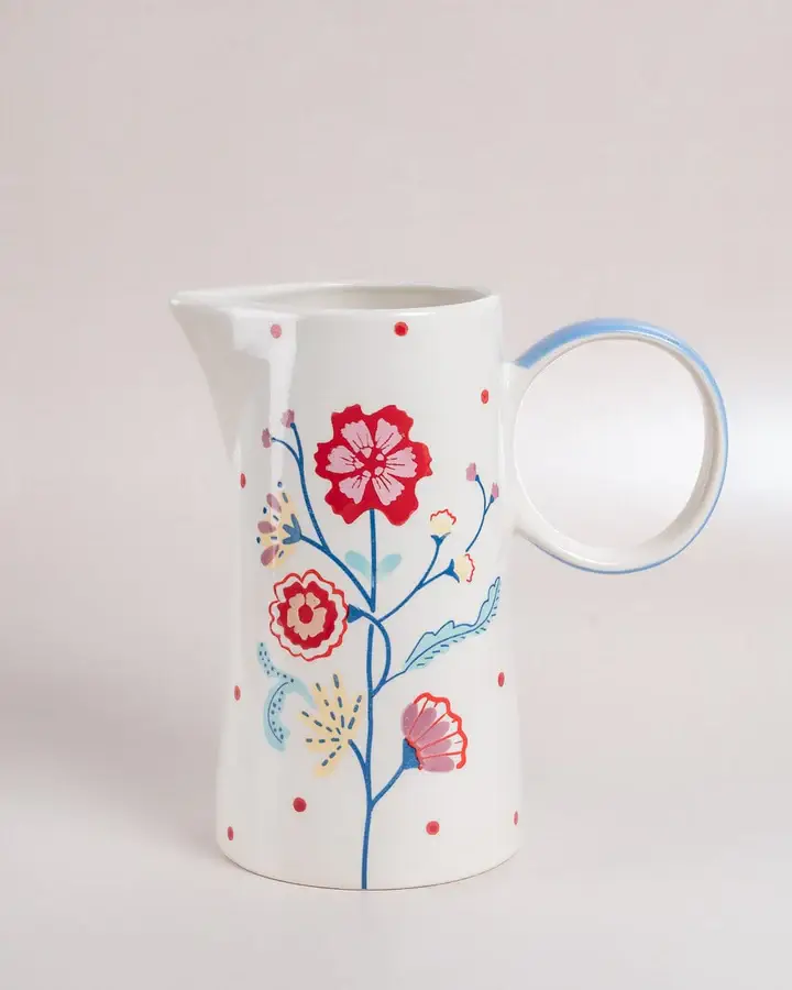 Ce pichet s’associe parfaitement à toute notre vaisselle éclaboussée bleue. Il est idéal pour les boissons chaudes ou froides. La anse peut accueillir les quatre doigts de la plupart des adultes. Il contient jusqu'à 30 onces liquides (887 ml). Adapté à une utilisation au micro-ondes et au lave-vaisselle. Façonné au tour, éclaboussé à la main, avec un glaçage fabriqué en interne.