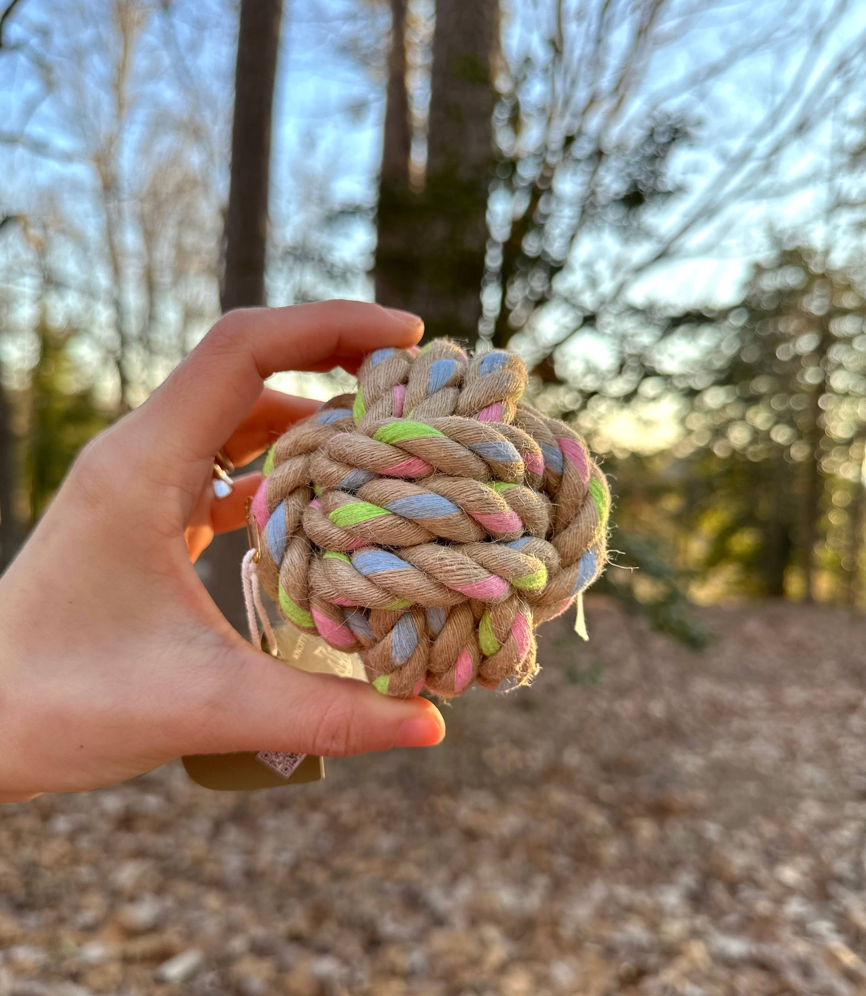 Cette charmante petite balle de nœuds est nouée à la main avec soin par les artisans de Monli. Mesurant seulement 1,5 pouces de large et pesant 0,8 oz, ce délicat mélange de chanvre naturel et de coton recyclé présente de doux accents pastel. Chaque nœud représente l'engagement de notre famille à créer des jouets durables et sûrs pour les petits chiens ou les chiots. Le tissage serré offre une texture engageante tout en étant doux pour les dents et les gencives. 🌟 Note de Monli : Alors que nous passons de notre ancienne marque, Knotty Pawz, à notre nouveau nom Monli, certains produits peuvent arriver sans étiquettes de marque. Nous vous remercions sincèrement pour votre patience et votre compréhension pendant cette période. Pendant que nous mettons à jour notre emballage, vous êtes invités à ajouter vos propres étiquettes ou marques si cela améliore votre expérience client. La qualité, l'artisanat et le cœur derrière chaque produit.