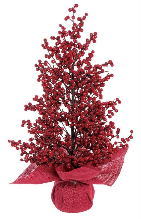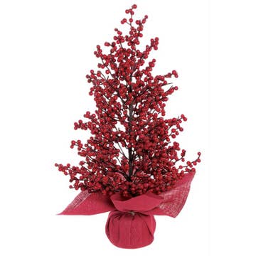 Arrangement de pin et de baies enneigés dans un pot en tricot rouge en vente B2B