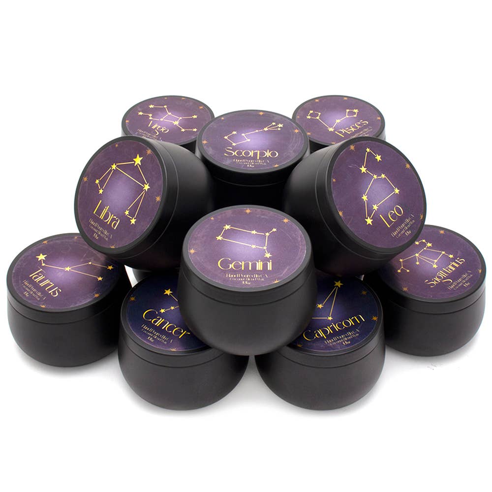 Qui n'aime pas un cadeau attentionné qui met en valeur ses meilleures qualités ? Ces bougies Zodiacales sont un choix parfait pour les clients cherchant un cadeau personnalisé. En tant que fabricant durable et certifié B Corp, nous plaçons les personnes et la planète au cœur de nos priorités, utilisant le commerce comme une force positive. Chaque bougie met en avant les traits de personnalité positifs d'un signe astrologique, associés à un parfum assorti. Que vous croyiez ou non aux horoscopes, ces bougies en mélange de soja raviront tous les amateurs grâce à leurs messages positifs. Le design intègre les 4 éléments zodiacaux : terre, feu, eau et air. Contenant : aluminium recyclable de 170 g (6 oz), 8,3 cm de diamètre x 7,6 cm de hauteur Parfum : fragrances à base d'huiles essentielles Durée de combustion : 35 heures Cire et mèche : mélange de soja et noix de coco avec mèche en coton