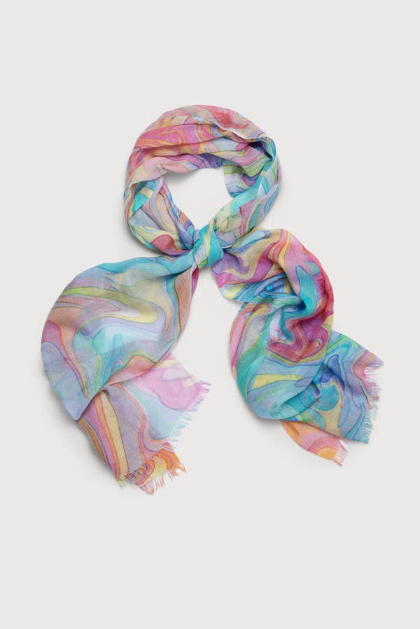 Cette écharpe oblongue affiche un style coloré vibrant et doux. Laissez-vous séduire par l'art d'accessoiriser avec cette pièce unique. Cette écharpe oblongue mesure environ (pouces) : L : 64 l : 32 100 % POLYESTER