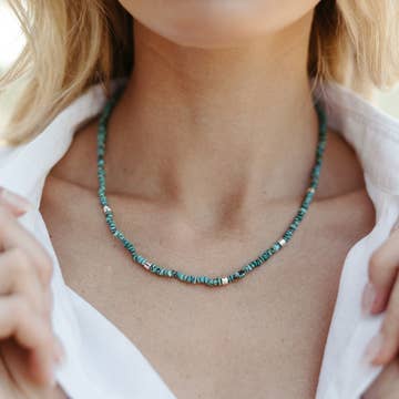 Collier ras du cou en turquoise véritable avec perles et apprêts en or rempli 14k de haute qualité ; ajustable. - Longueur : 38 cm + rallonge en or rempli de 5 cm - Perles rondelles en turquoise véritable de 3 mm et perles en or rempli 14k de 2 mm et 3 mm. - Fermoir mousqueton - Chaque pierre précieuse naturelle est unique et donc aucune ne se ressemble. Les pierres, couleurs et tailles peuvent varier. - Perles et apprêts en or rempli 14/20 14k de haute qualité, fabriqués aux États-Unis. Les perles et apprêts ne terniront pas, ne se corroderont pas et ne rouilleront pas. - Fait main avec les normes les plus élevées et des matériaux de qualité. Cet article est fabriqué sur commande et expédié avec amour depuis notre studio situé à West Chester, PA. Tous les bijoux True By Kristy sont livrés avec un emballage de marque, du papier cartonné et/ou des étiquettes.
