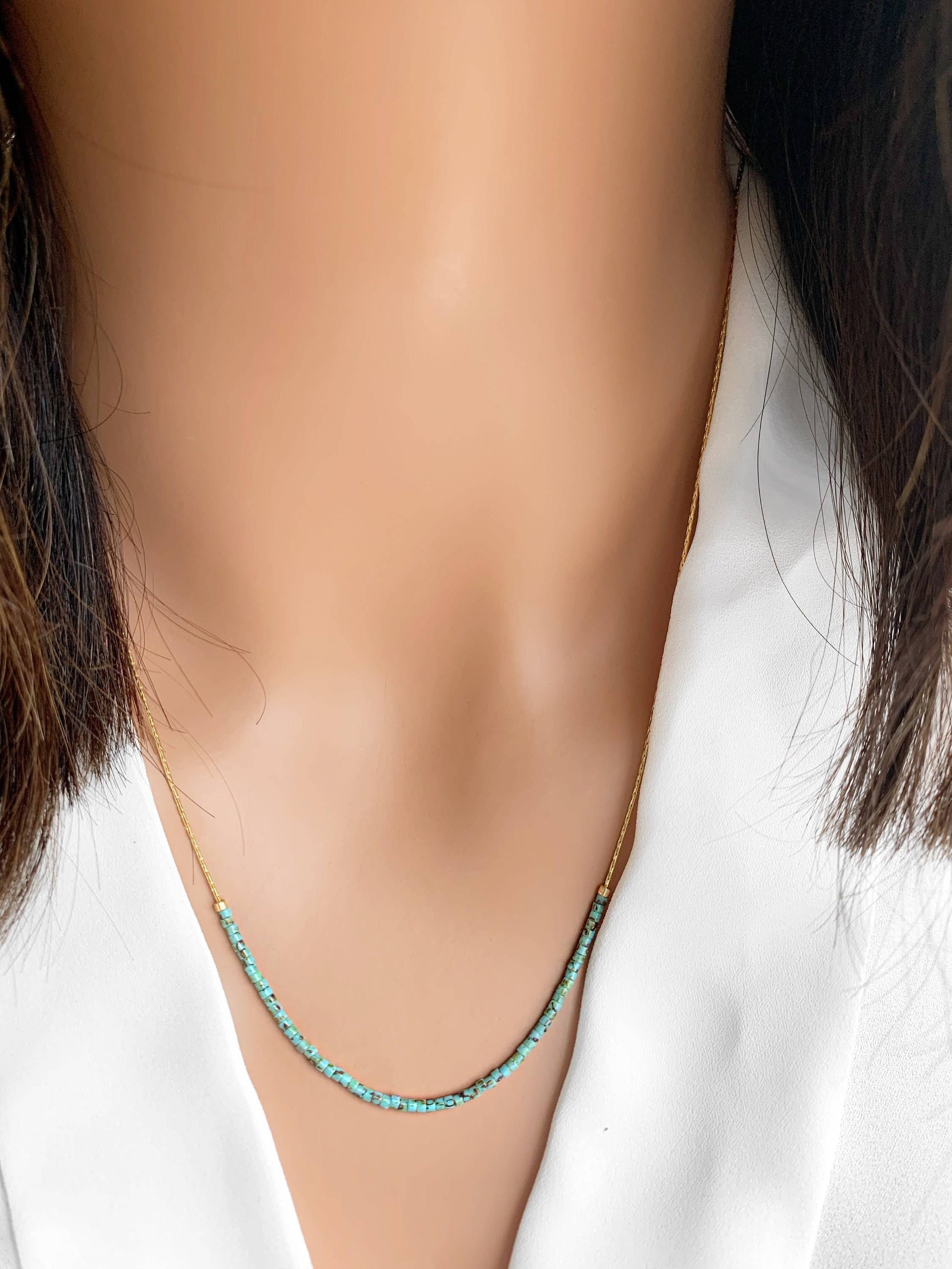 Collier ras du cou en turquoise véritable avec perles rondelles et perles & apprêts en or rempli 14k de haute qualité ; ajustable. - Longueur : 38 cm + rallonge en or rempli de 5 cm - Véritables perles rondelles en turquoise de 3 mm et perles en or rempli 14k de 2 mm & 3 mm. - Fermoir mousqueton - Chaque pierre précieuse naturelle est unique et donc aucune n'est identique. Les pierres, couleurs et tailles peuvent varier. - Perles & apprêts en or rempli 14/20 14k de haute qualité, fabriqués aux États-Unis. Les perles & apprêts ne terniront pas, ne s'oxyderont pas et ne rouilleront pas. - Fait main avec les normes les plus élevées et des matériaux de qualité. Cet article est fabriqué sur commande et expédié avec amour depuis notre studio situé à West Chester, PA.