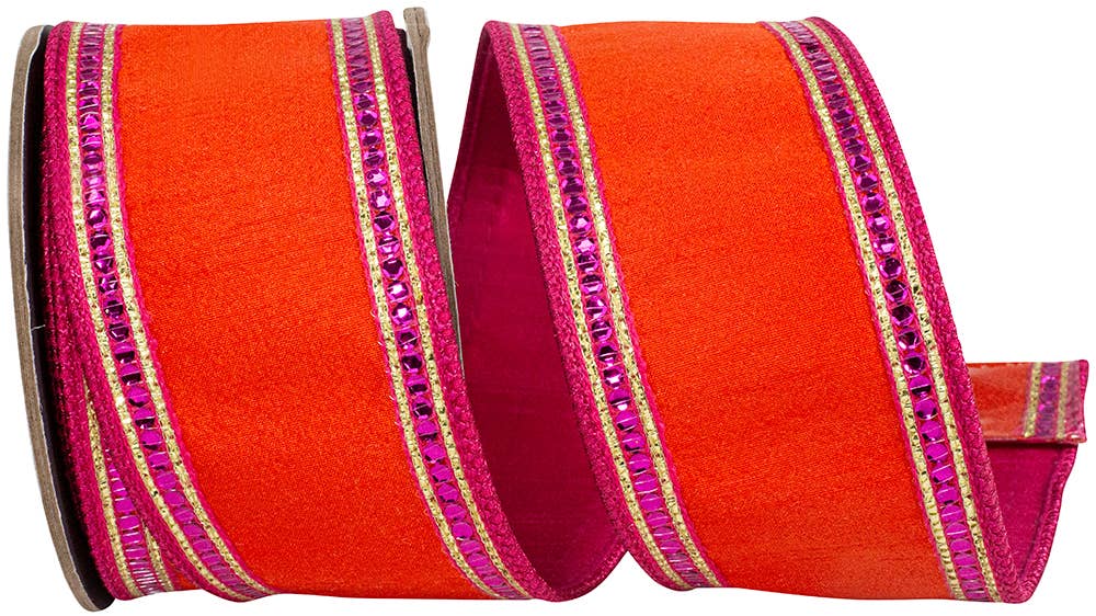 Bordure rayée à paillettes Dupioni Deluxe Wired Edge, 4 po en vente B2B
