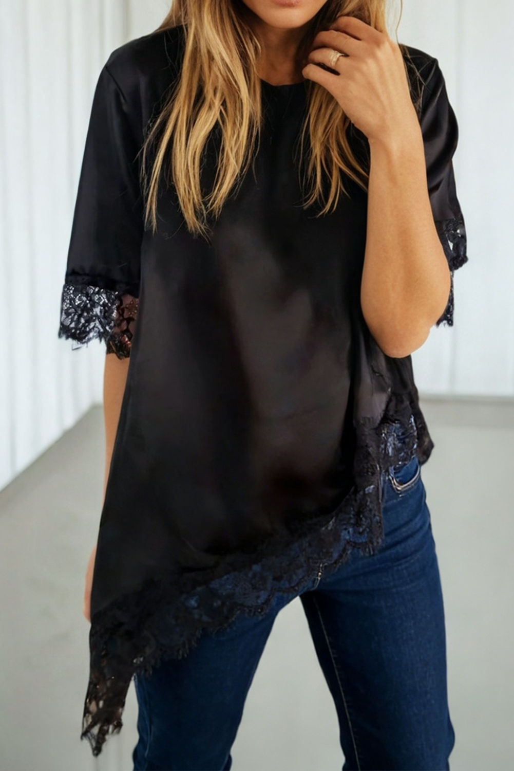 Top superposé transparent en dentelle