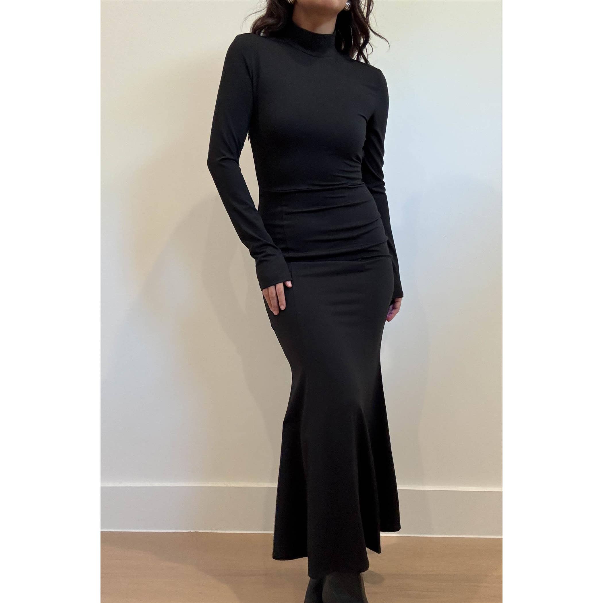 Robe mi-longue moulante côtelée à col montant en vente B2B