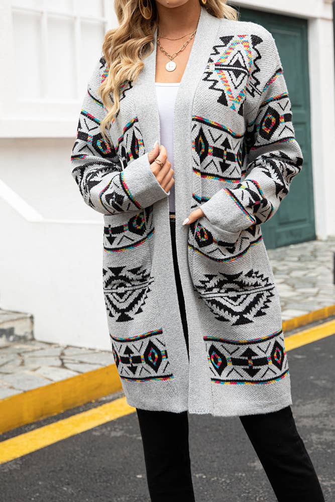 OUG80573 Cardigan en tricot Tribal ouvert sur le devant pour femmes avec col drapé - 65 % acrylique, 35 % polyester - Lavage à la main recommandé - Disponible en : IVOIRE, GRIS CLAIR et SAUGE