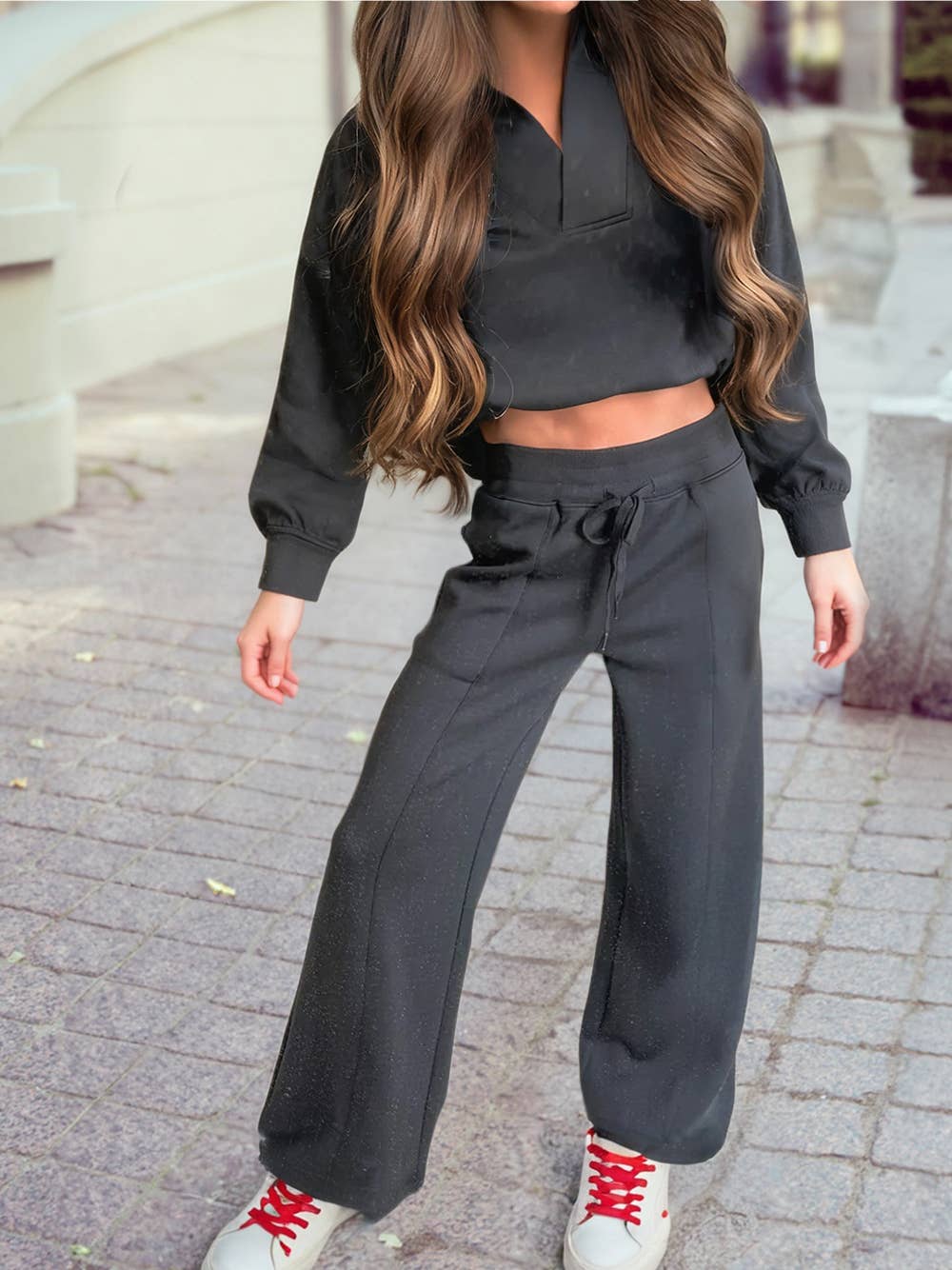 Sweat à capuche court 2 pièces et pantalon de survêtement assorti en vente B2B