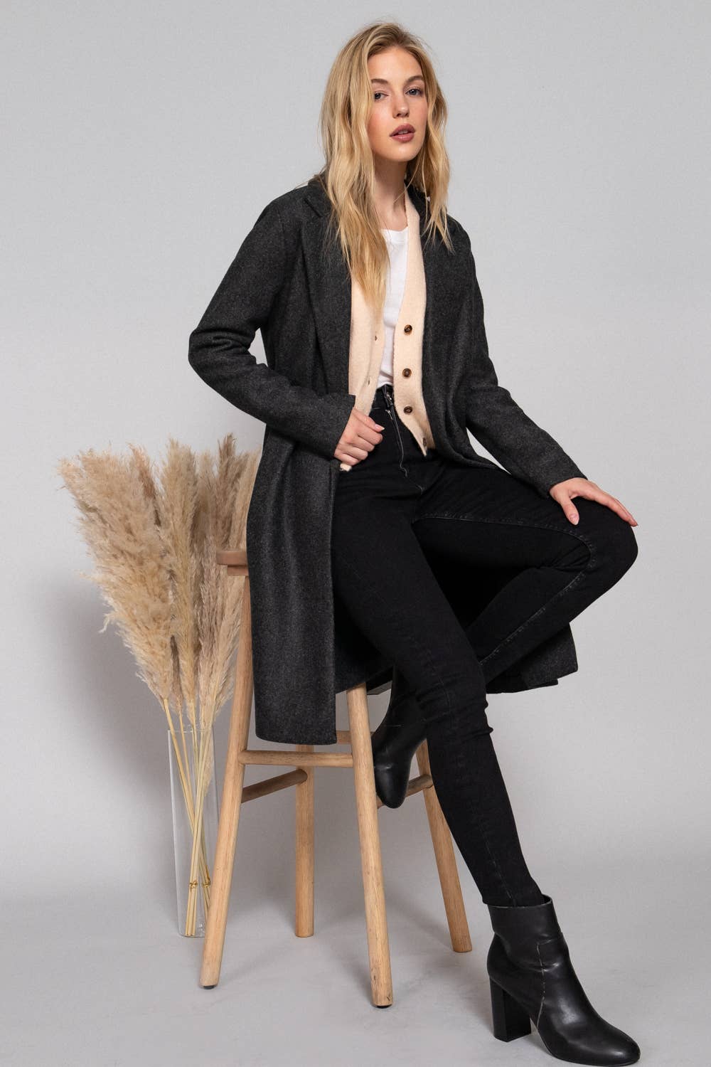 MANTEAU EN LAINE À MANCHES LONGUES À MANCHES LONGUES DE COULEUR PROPRE À LA MODE