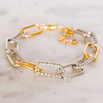Bracelet à maillons en chaîne trombone plaqué or • Taille : 0,3" H, 7" + 1" L • Fermeture à mousqueton • Conforme au plomb et au nickel • Fabriqué en Corée • Plaqué or