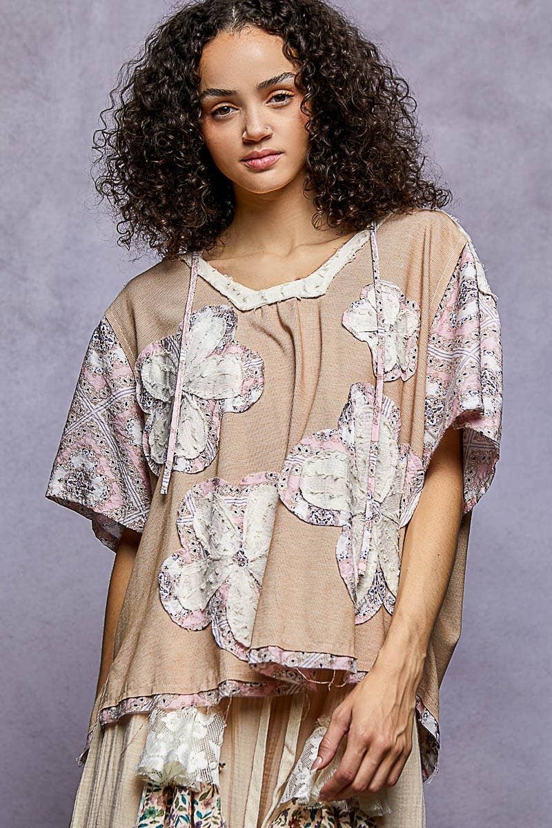 TOP À MANCHES COURTES AVEC COL EN DENTELLE ET MÉLANGE PLUS EN VENTE B2B