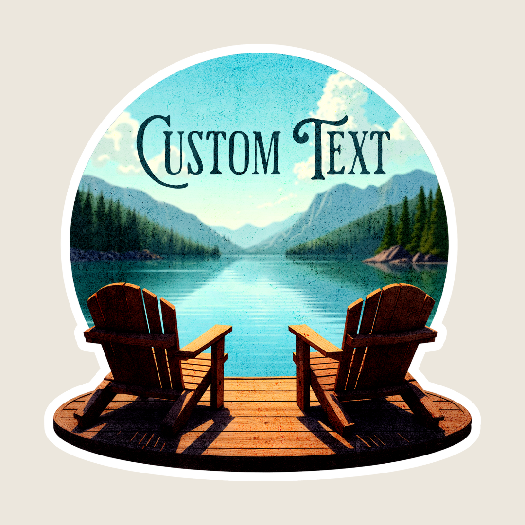Obtenez un autocollant personnalisé cool pour votre ville natale avec une vue sur un lac de montagne depuis des chaises Adirondack. Autocollant en vinyle découpé, étanche et résistant aux intempéries, pour des années d'aventures en intérieur et en extérieur. Minimum de 45 unités. Une maquette de conception sera envoyée dans 3 à 4 jours ouvrables. Une fois approuvés, vos autocollants personnalisés arriveront en 7 à 10 jours ouvrables. PERSONNALISEZ : Ajoutez votre lac, ville, région, parc d'État ou entreprise. Gardez moins de 25 caractères pour un impact maximal du design et une lisibilité optimale. 3,5" L x 3,5" H (autocollant pour bouteille d'eau/ordinateur portable ou petit autocollant de pare-chocs). D'autres tailles peuvent être demandées. Les autocollants souvenirs sont un succès garanti dans les boutiques de cadeaux et les boutiques : coût faible, créent de beaux souvenirs et prennent peu de place. Créez vos propres décalcomanies personnalisées comme article de vente incitative ou d'achat impulsif. Cadeau nature parfait pour les campings, les complexes de camping-cars, les boutiques de cadeaux de parc et les magasins de plein air dans le nord-ouest du Pacifique, la Nouvelle-Angleterre et les États du sud. Consultez la section Autocollants personnalisables de notre boutique pour plus de décalcomanies de montagne et de camping personnalisées et d'inspiration !