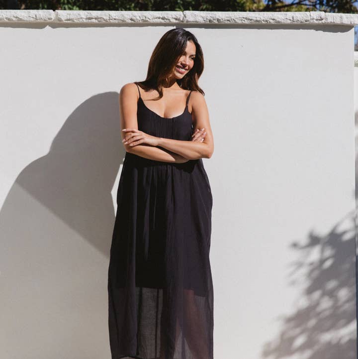 ∙ VVNE11787 ∙ Viscose/Lin ∙ 8:10:12:14:16=2:2:2:1:1 ∙ Imprimé exclusif ∙ Encolure carrée ∙ Bretelles larges et réglables ∙ Sans manches ∙ Fermeture éclair au milieu du dos ∙ Corsage froncé ∙ Longueur maxi ∙ Coupe décontractée ∙ Notre mannequin porte la taille 8