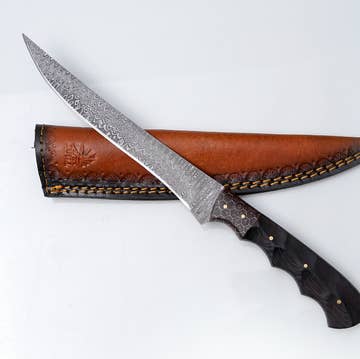 Parfait pour un cadeau de Noël Bunka Santoku, lame de 17 cm. Le Bunka Santoku est l'équivalent plus traditionnel du Santoku : un couteau polyvalent idéal pour hacher légumes et fruits, trancher viandes et préparer le poisson (tout sauf les os et aliments surgelés). Bunka (文化) signifie « culture » en japonais. Son nom provient de son usage traditionnel dans la préparation de la cuisine culturelle dans les foyers japonais. Comme le Santoku classique, le Bunka a une lame haute et plate ; cependant, la forme de sa pointe diffère nettement. Les couteaux Bunka se distinguent par leur profil « tanto inversé », aussi appelé « pointe en K », qui offre plus de précision qu’une lame arrondie classique. Précision japonaise, robustesse occidentale. Le meilleur des deux mondes. * 100 % fait main * Acier inoxydable japonais 440C à haute teneur en carbone, ultra-tranchant * Full tang caché * Manche en ébène * Dureté HRC : 60 +/- 1 * Poids : 170 g * Parfaitement équilibré * Inoxydable * Saya en bambou inclus avec chaque couteau * Garantie à vie
