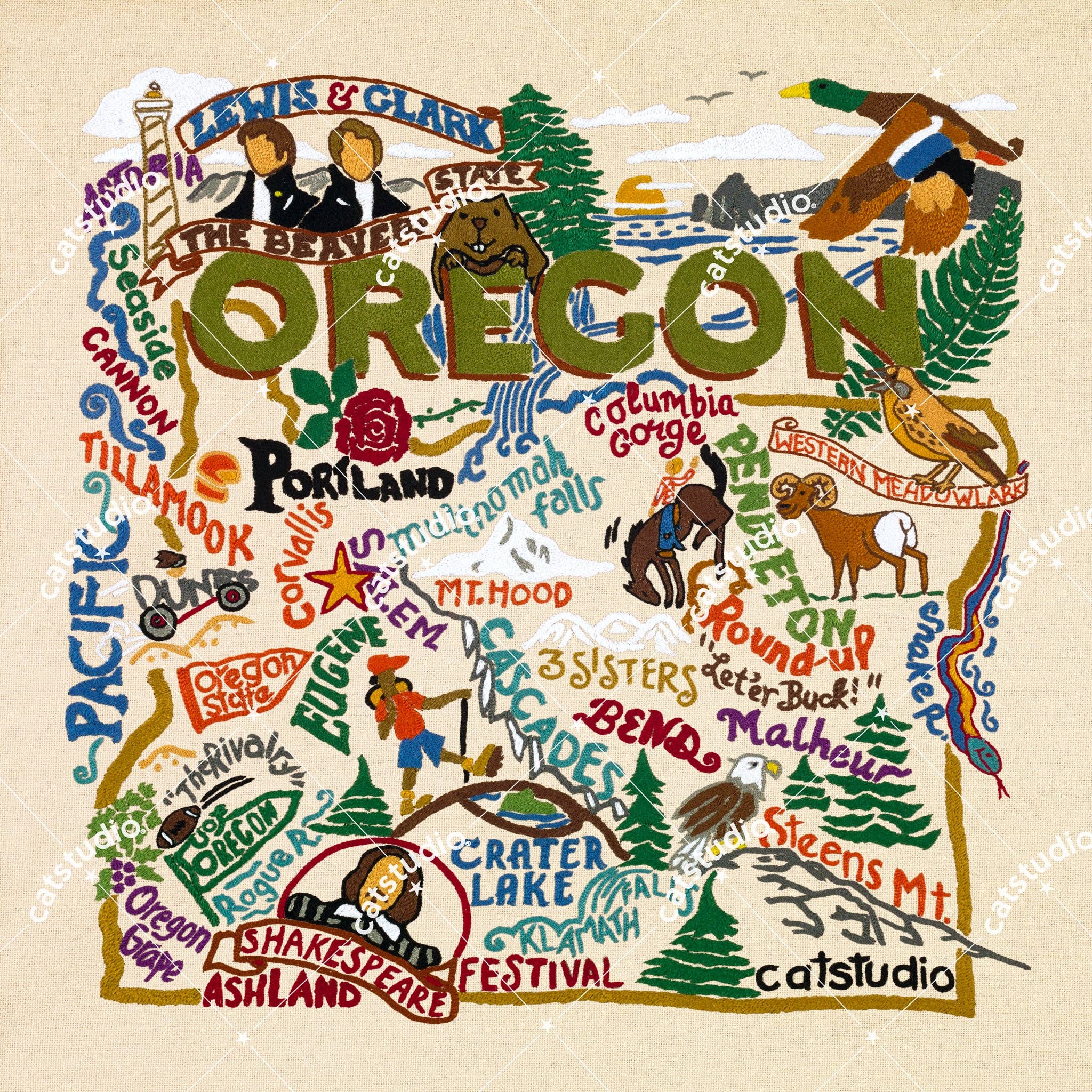 Carte de la côte de l'Oregon 11"x14" Impression artistique Aquarelle dessinée à la main Il n'y a pas de région plus côtière que celle-ci. Et grâce à une loi pionnière sur les plages, les 363 miles de côte de l'Oregon restent libres et publics. Impression artistique 11" x 14" Orientation : Horizontale Impression de haute qualité sur papier cartonné premium. Encre de la plus haute qualité utilisée pour améliorer les textures riches et la couleur. Emballé avec cellophane, carton de support et carte de visite Hiker Booty Créé avec aquarelle, stylo et encre. Imprimé et expédié depuis Bend, Oregon