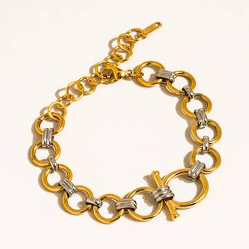 G-Br - Bracelet en grands anneaux ronds en fil d'argent/or