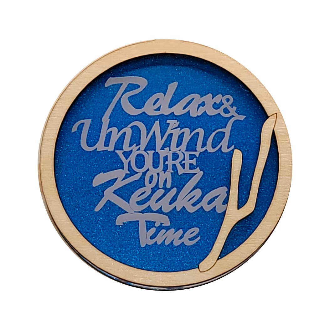 Nos aimants Finger Lakes fabriqués à la main en bois et en acrylique sont gravés et découpés par nos soins, puis assemblés à la main. Ce dessin dit « Emmenez-moi dans les lacs ». La couleur de fond est le bleu métallisé. Chaque aimant mesure environ 3/8 po d'épaisseur, 2 po de largeur et 2 po de hauteur.