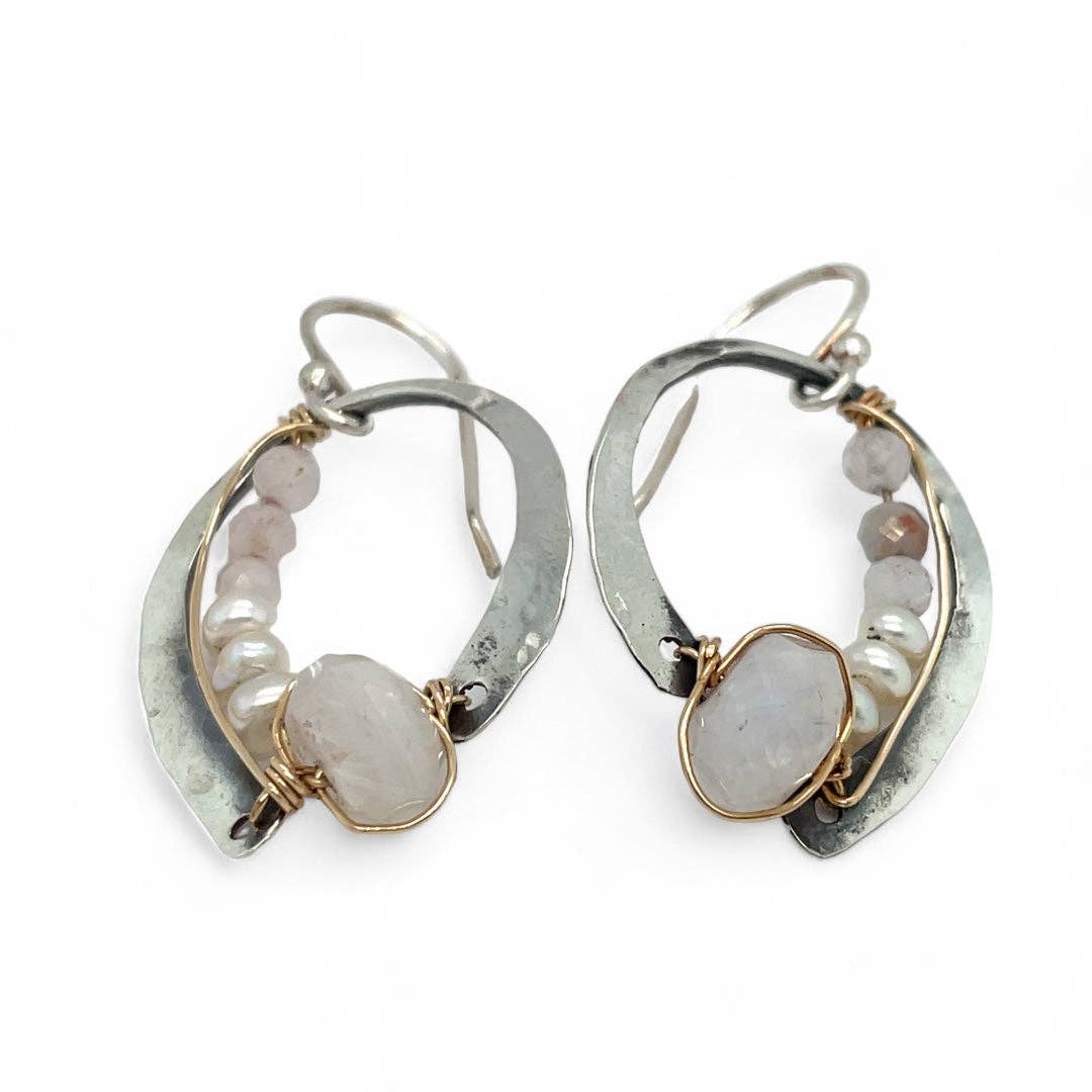 * Collection de perles d'eau douce avec pierres de sodalite * Goutte en argent sterling martelé à la main * Chaîne gourmette en argent sterling * Fil rempli d'or 14 carats * Crochets d'oreilles en argent sterling À assortir avec le collier East Coast Blue Sodalite 83610N