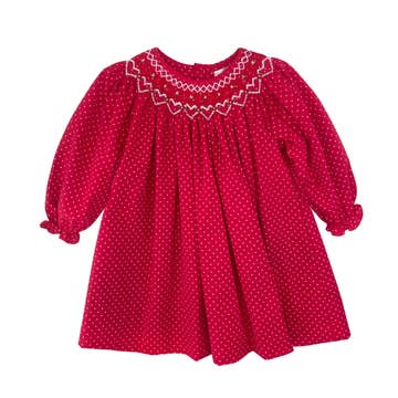 Marquez un touché des roues avec style avec notre robe de football smockée Bishop rouge et noire ! Décorée de façon ludique le long de l'encolure avec des ballons de football brodés, chacun orné de jolis nœuds, cette robe est un choix idéal pour les petits amateurs de sport. D'un rouge et d'un noir éclatants, c'est la tenue parfaite pour une journée pleine de douceur et de rebondissements !
