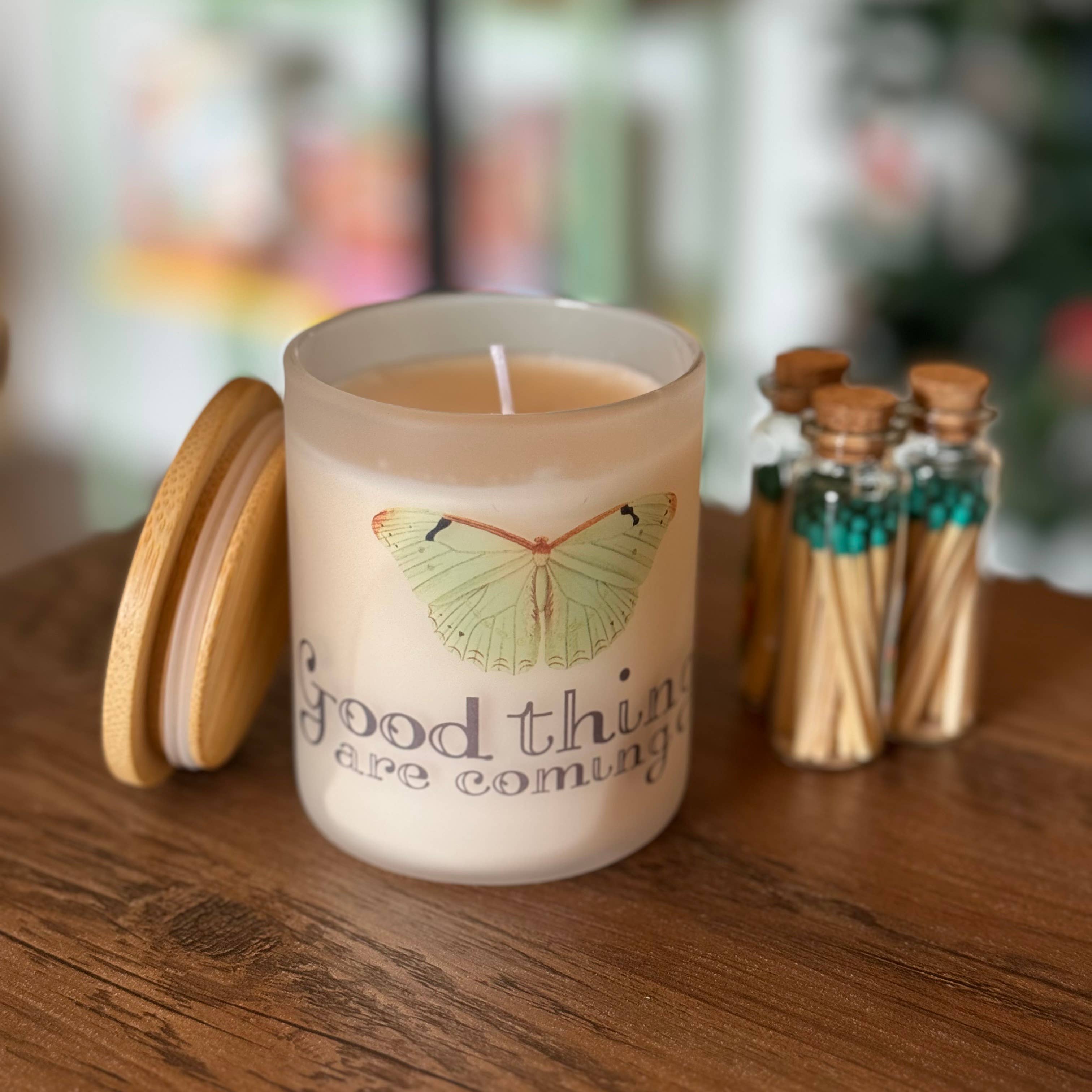 Une bougie en cire de soja végétalienne de 6 oz coulée à la main, à combustion propre et durable. Infusé de notre parfum signature joyeux « Hintercraft Volcano ».