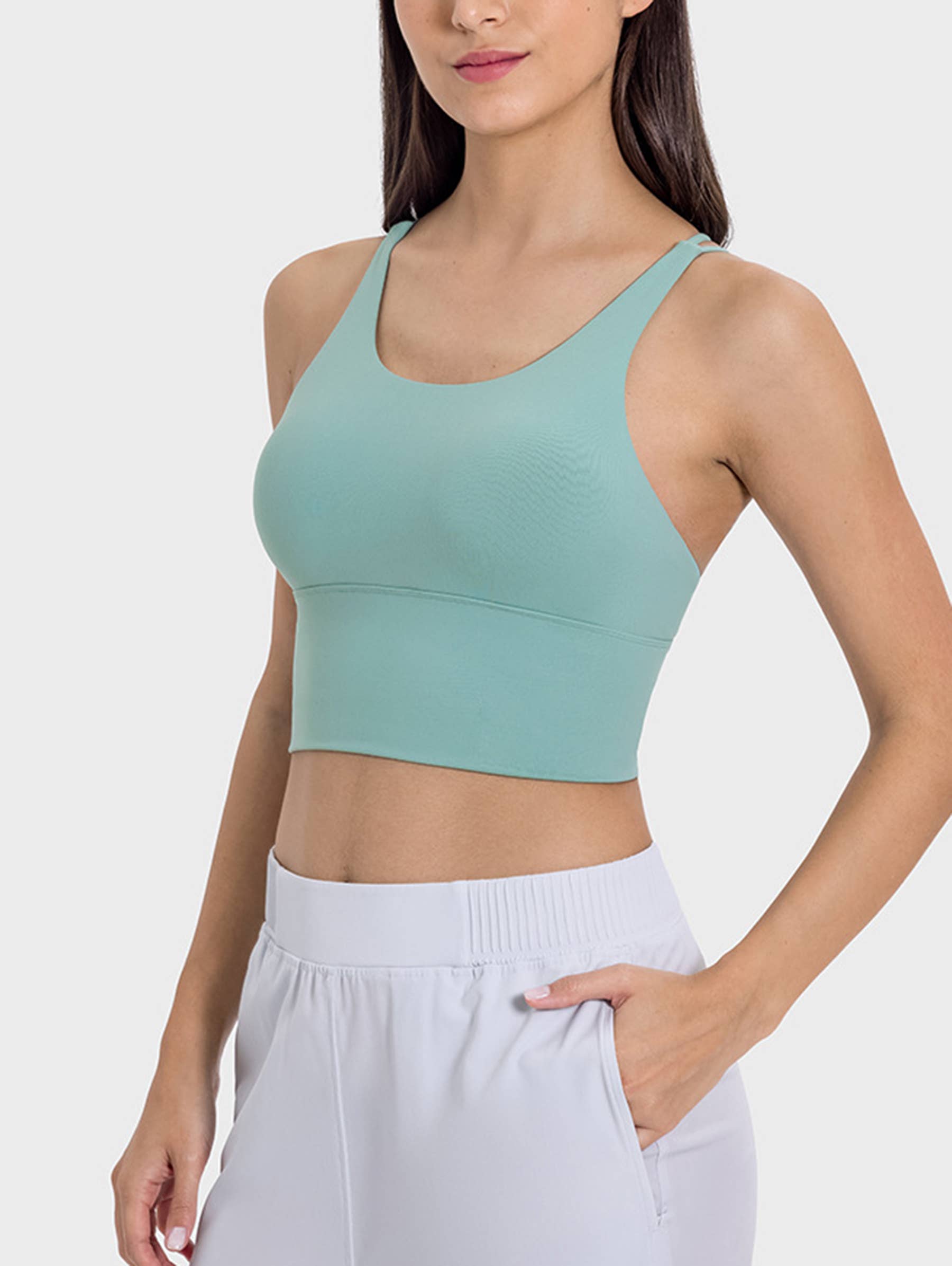 Haut de yoga à col en U à haute élasticité et coupe ajustée en vente B2B