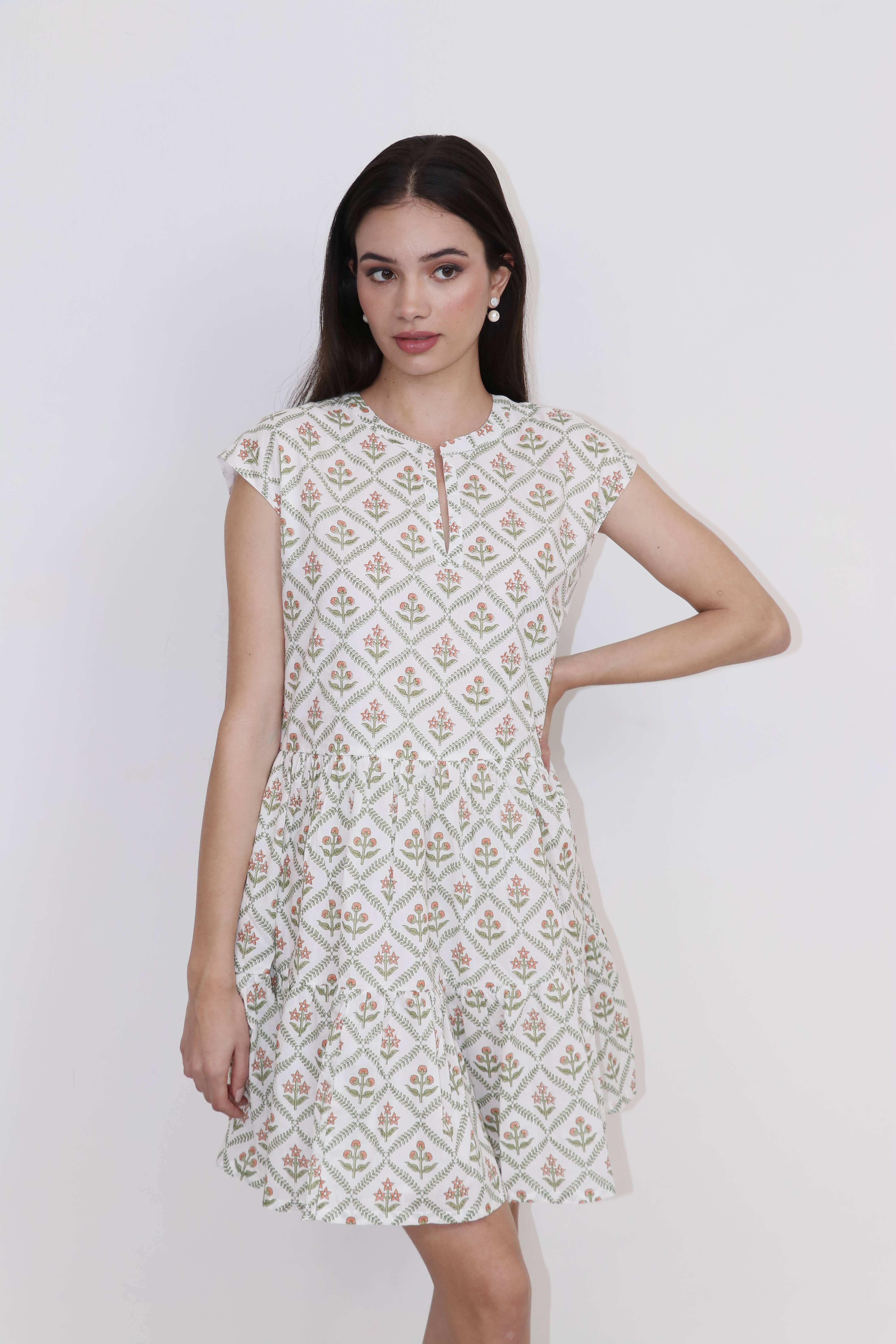 Robe trapèze fleurie avec poches. Doublure intérieure 100% Coton Imprimé à la main Fabriqué en Inde