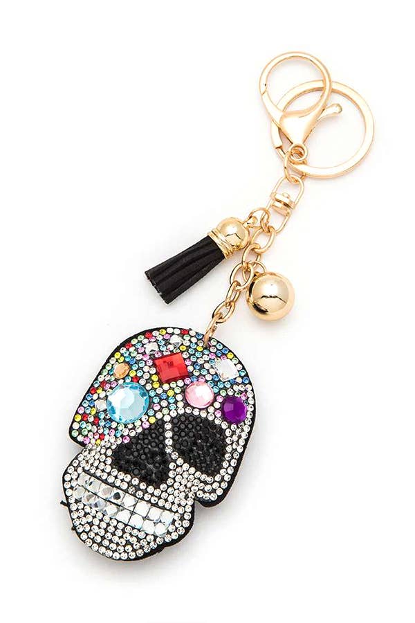 Porte-clés en forme de crâne en strass