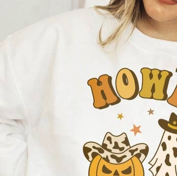 Présentation d'un nouveau design dans la boutique ! Le pull à col rond brodé « Western Ghosties » a été ajouté à ma collection d'Halloween. Détails : - Matériau : col rond doré 50/50. - Couleur : orange texane