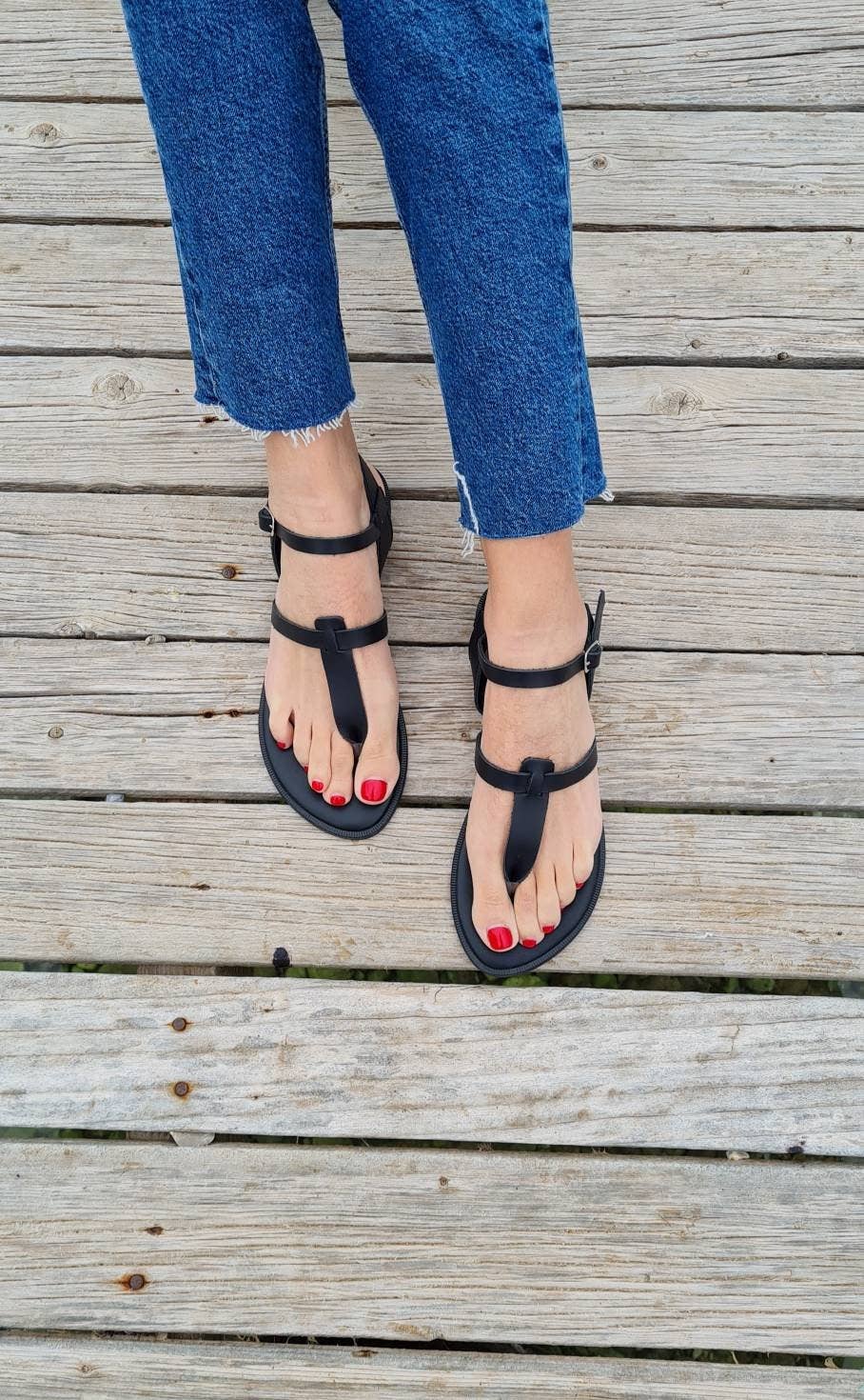 Sandales en cuir grec pour femmes, Tongs Sandales
