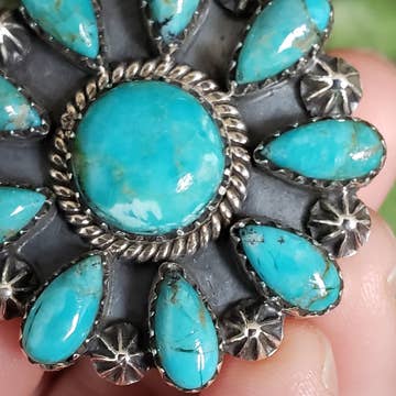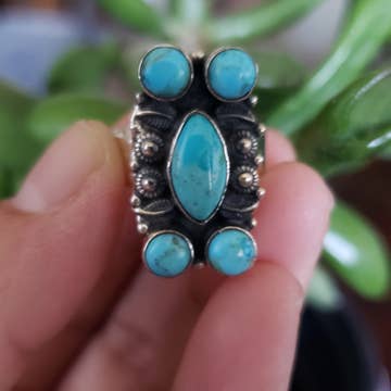 750326, Très grande bague ajustable en turquoise Navajo en vente B2B